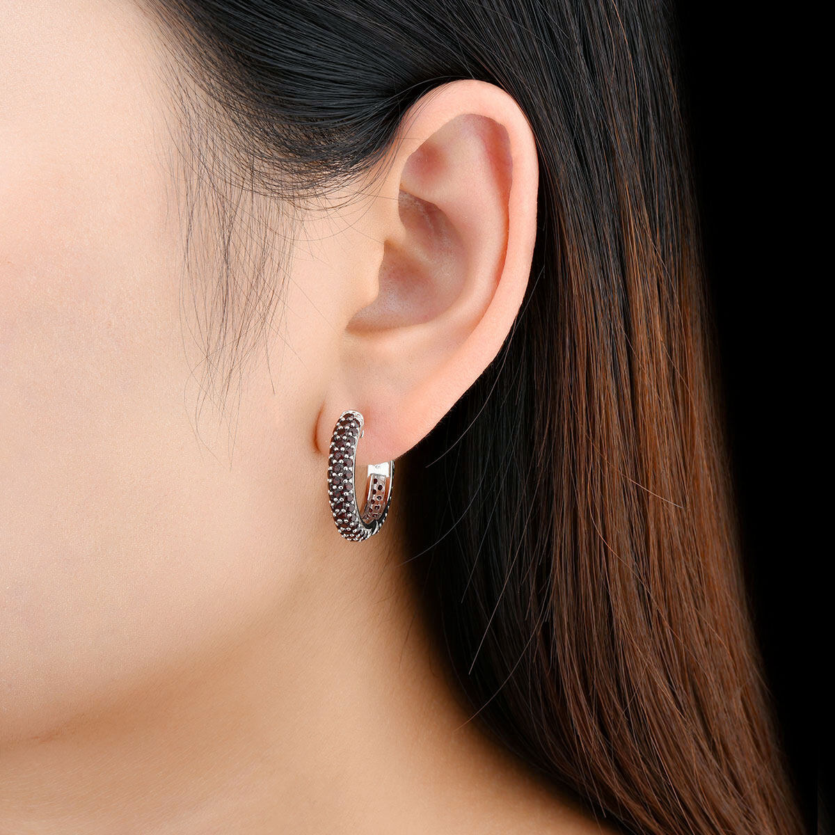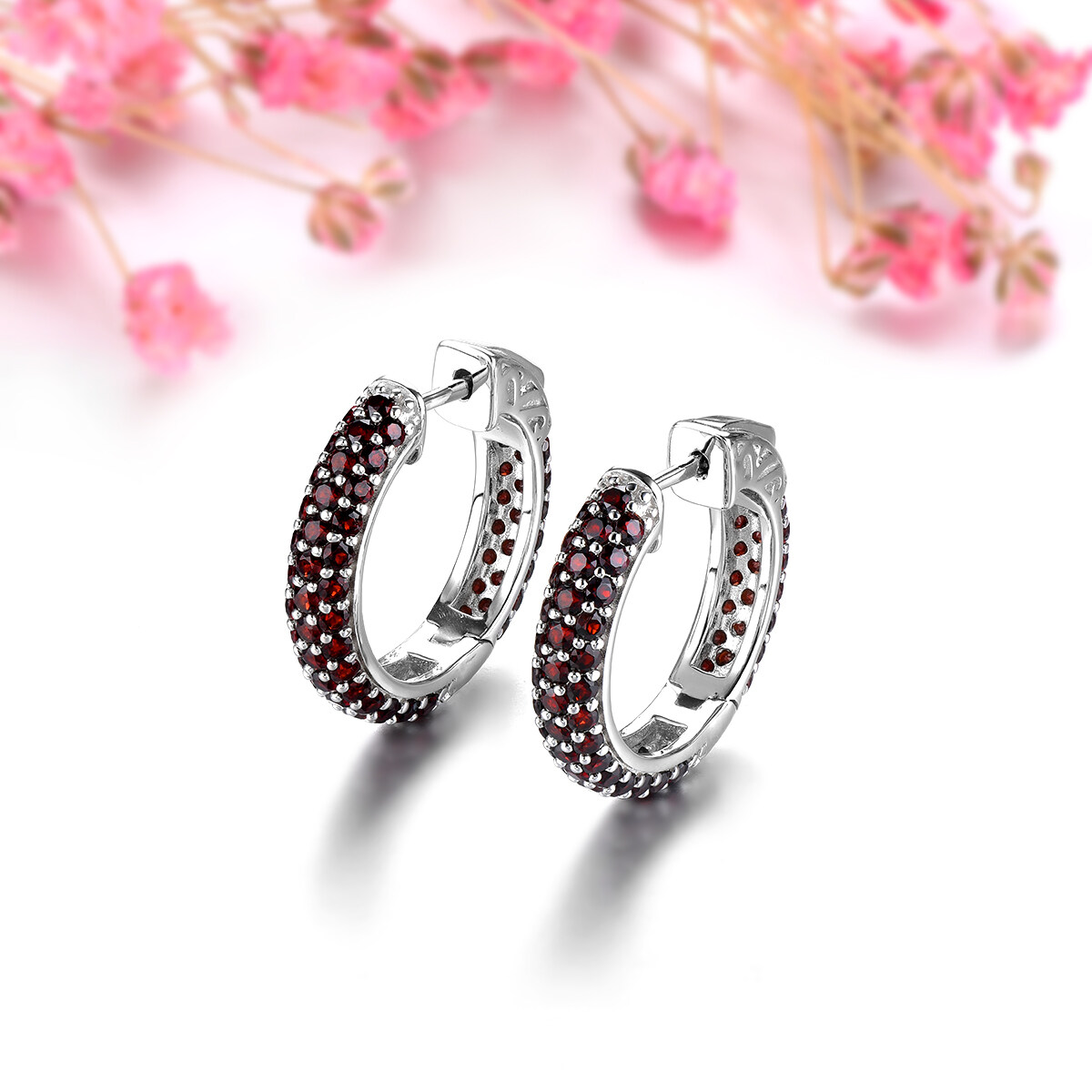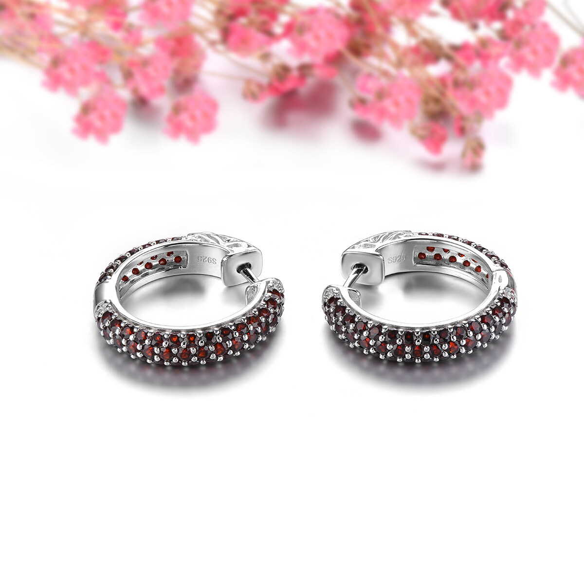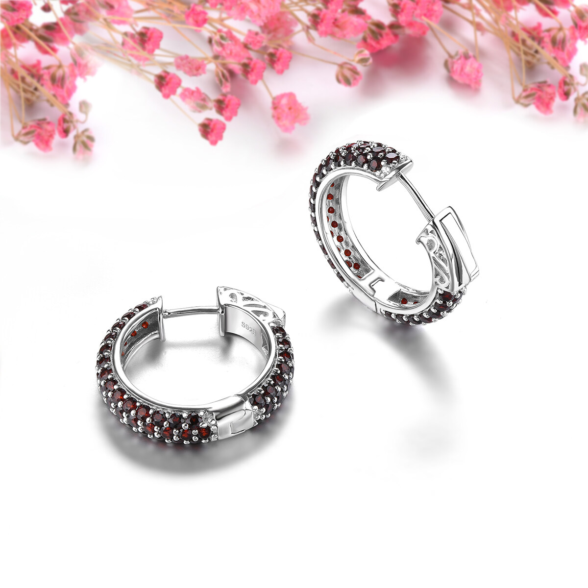 Lohaspie珠宝真正的5.2克拉斯耳环银925原始天然石榴石夹耳环红色圆形切割宝石诞生石榴石石榴石耳环女性珠宝圣诞礼物