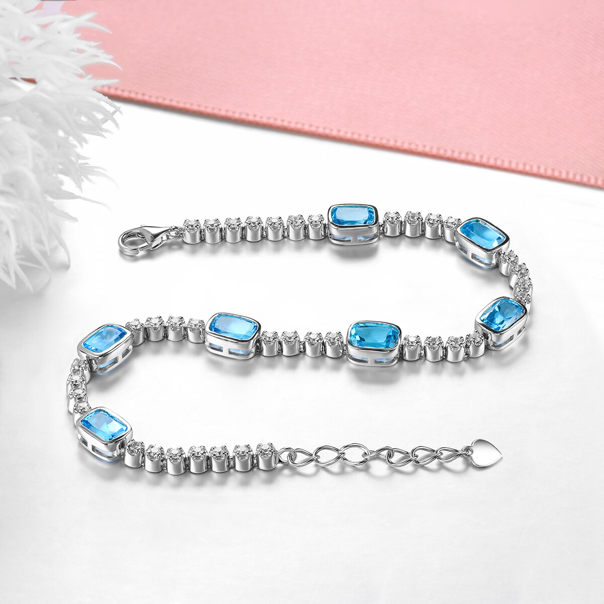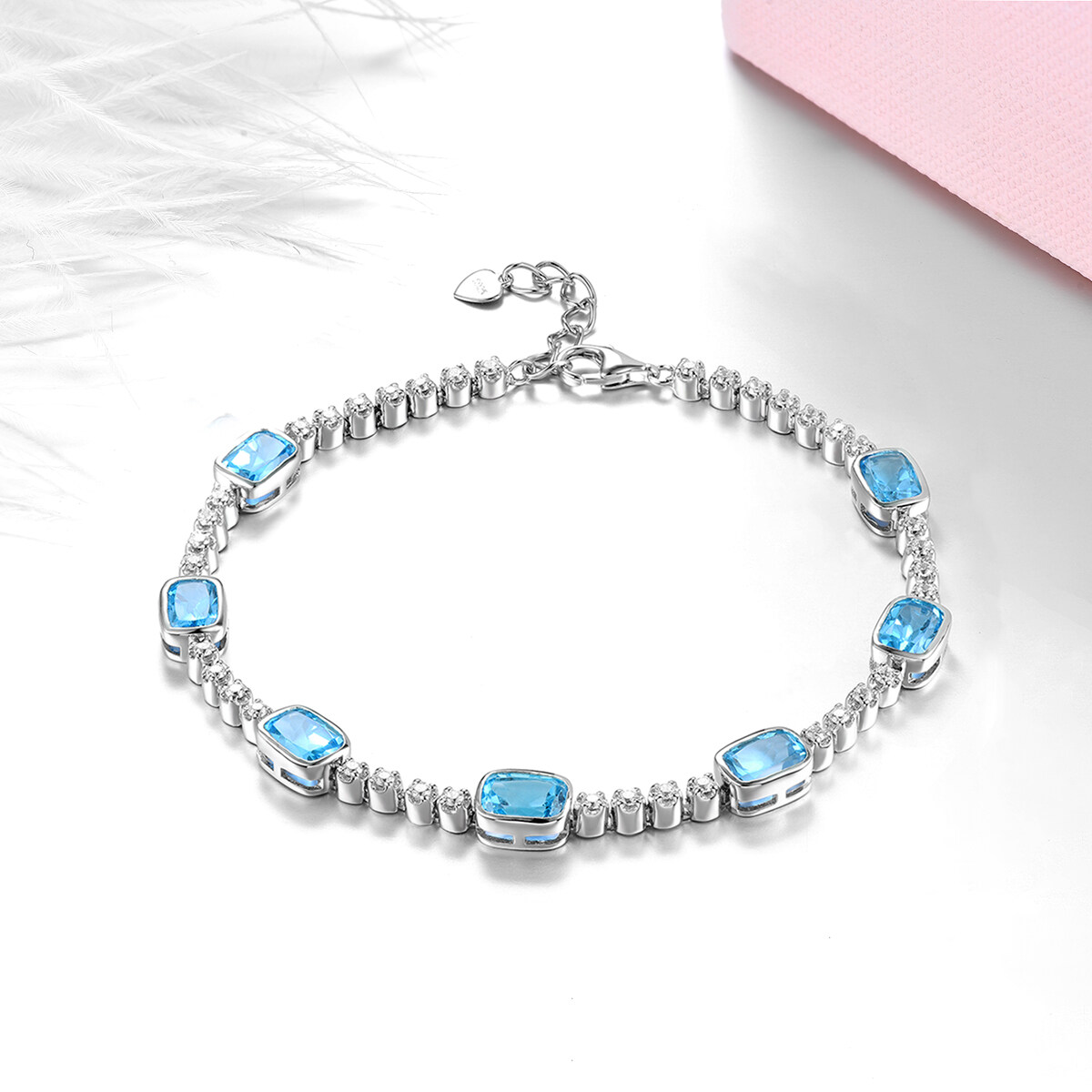 lohaspie珠宝7.5克拉斯纯银925原始天然瑞士蓝色顶层手镯蓝色宝石topaz手镯女性婚礼派对珠宝礼物