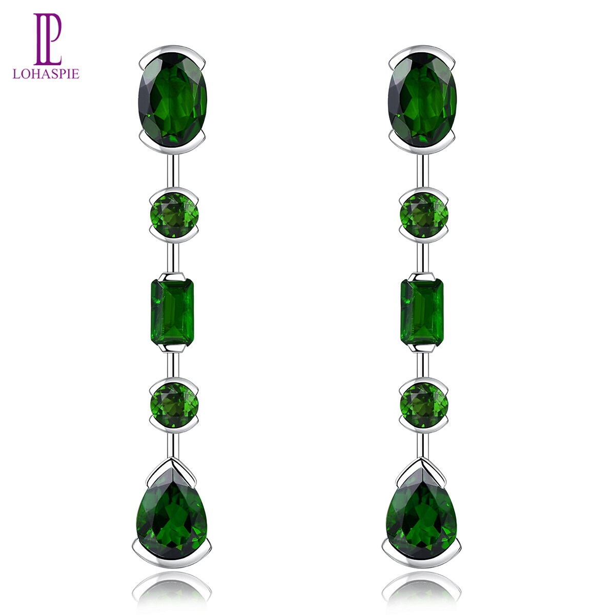 lohaspie珠宝真实的3.5克拉滴耳环银925原始天然铬侧滴耳环绿色宝石耳朵女性生日礼物珠宝