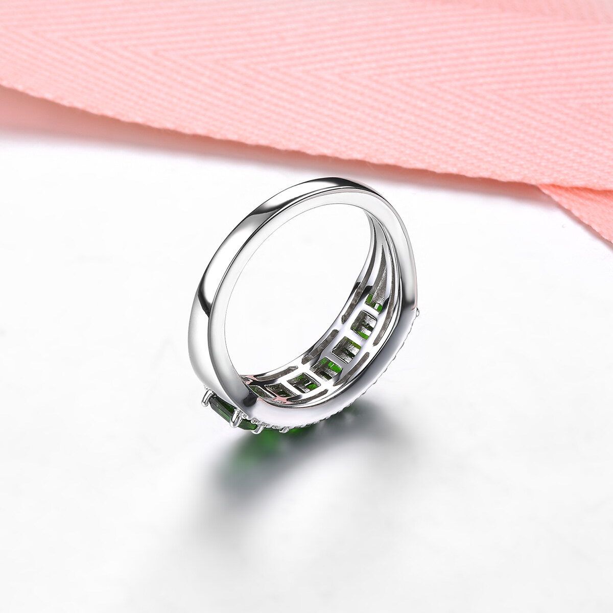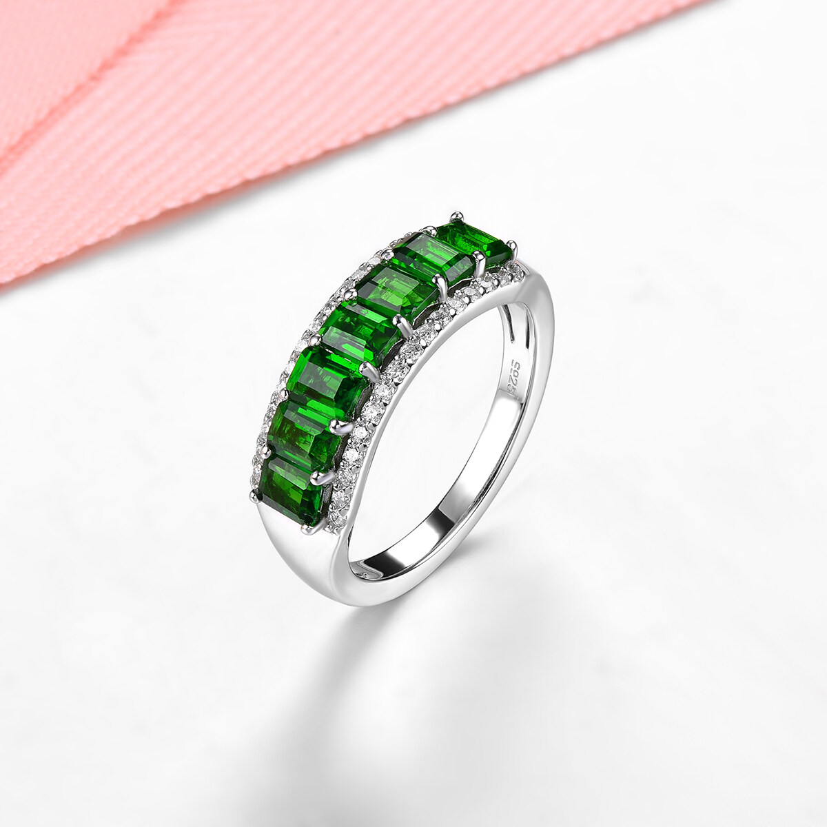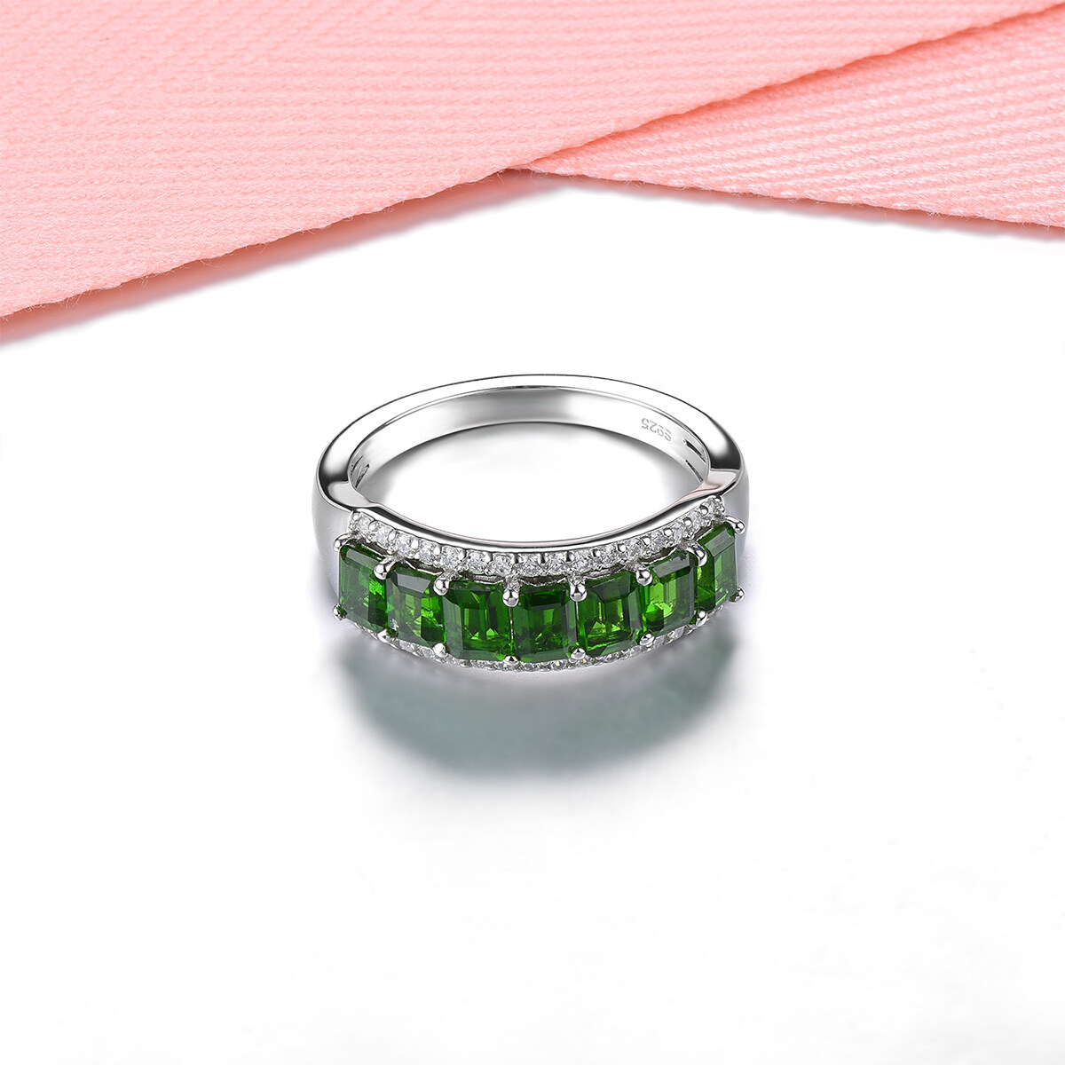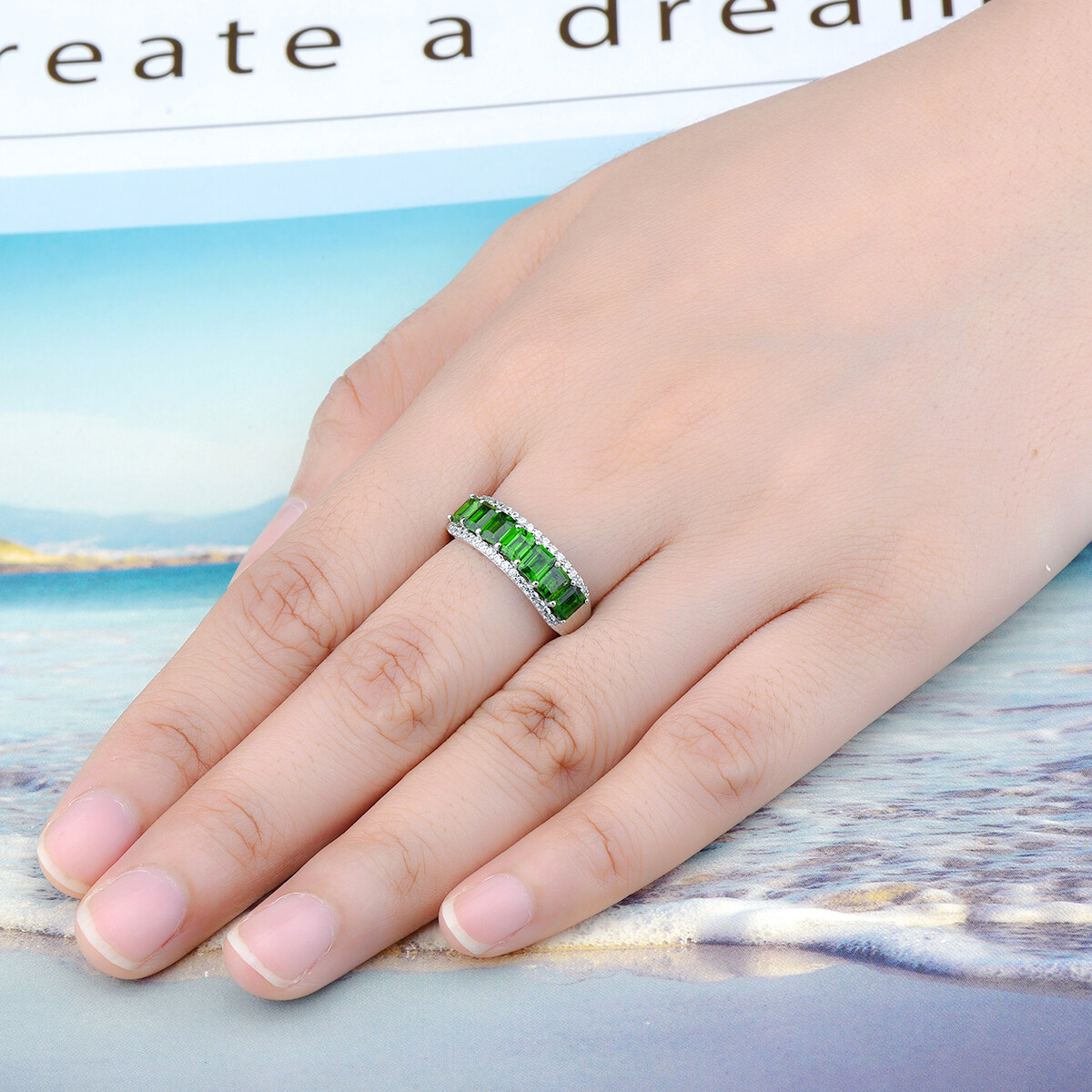 lohaspie珠宝真实的1.6克拉斯银戒指女性925原始天然铬圆环绿色宝石诞生石戒指珠宝礼品礼品