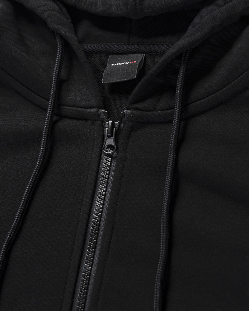 Yishion Men纯色拉链夹克配袋鼠口袋(黑色)
