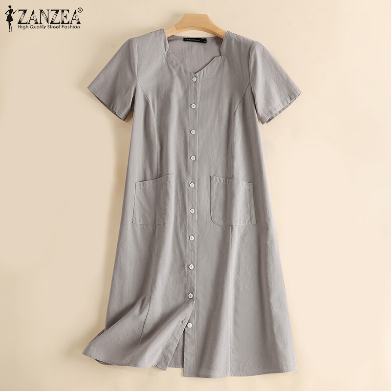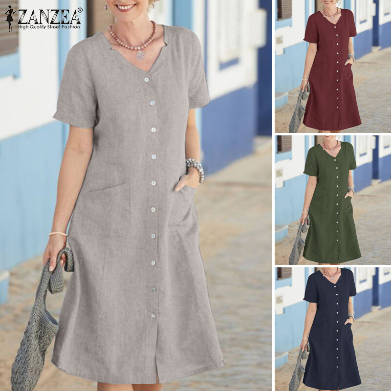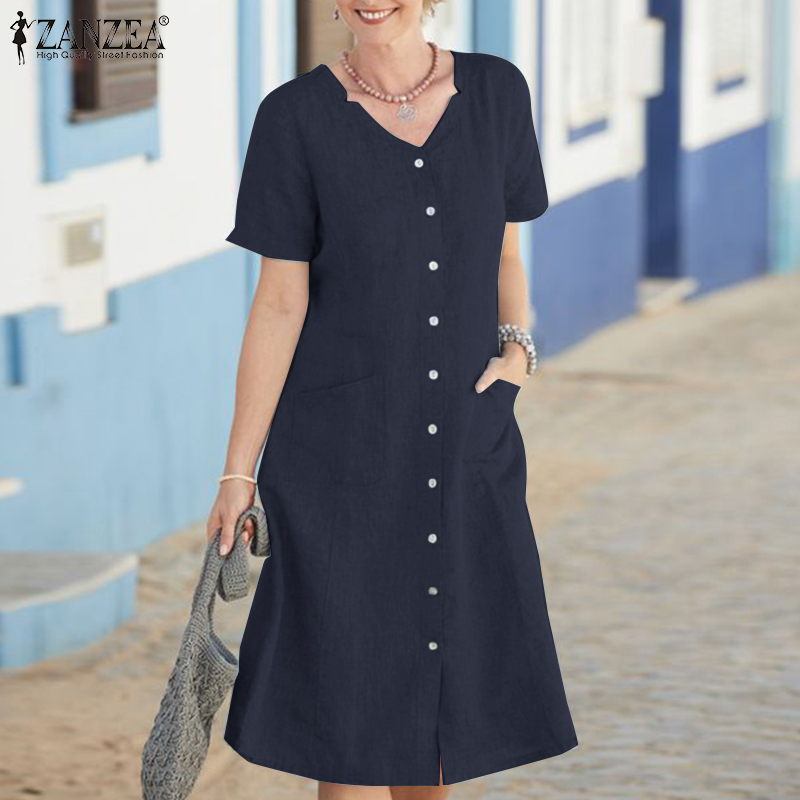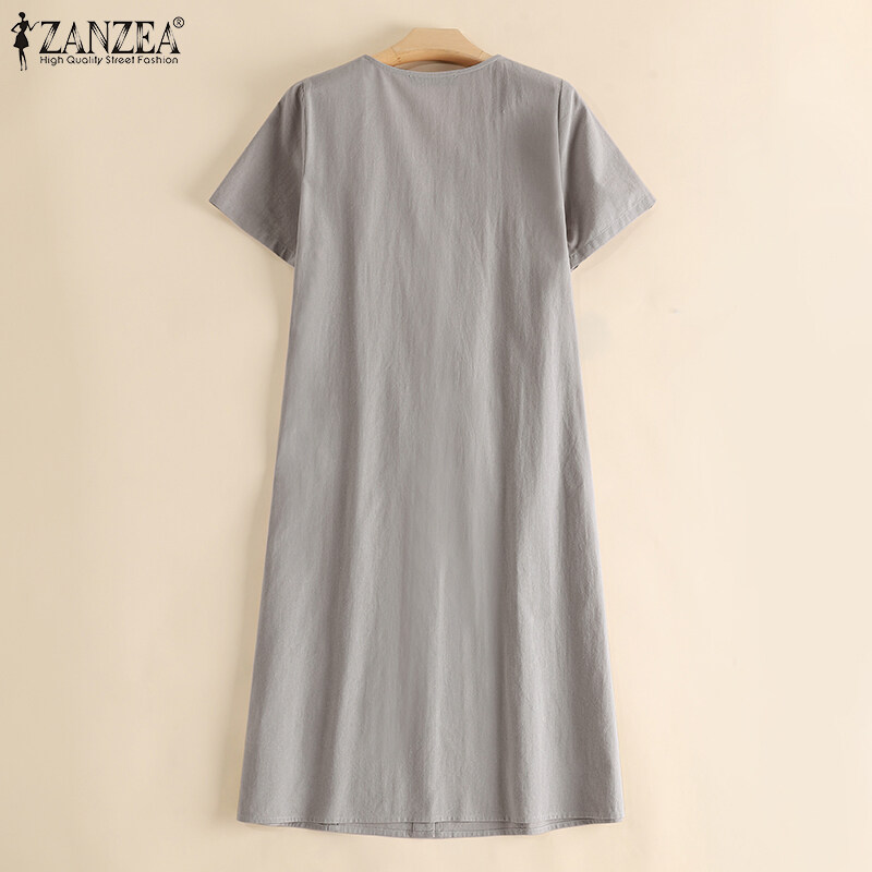 Zanzea妇女夏季短袖v颈膝盖长连衣裙正式工作连衣裙#15