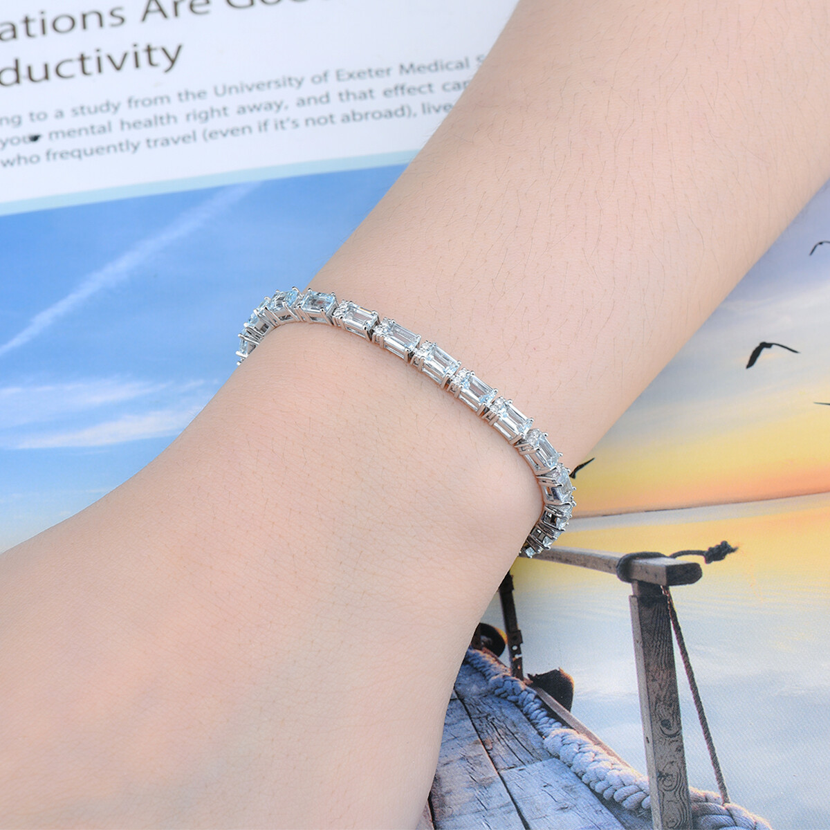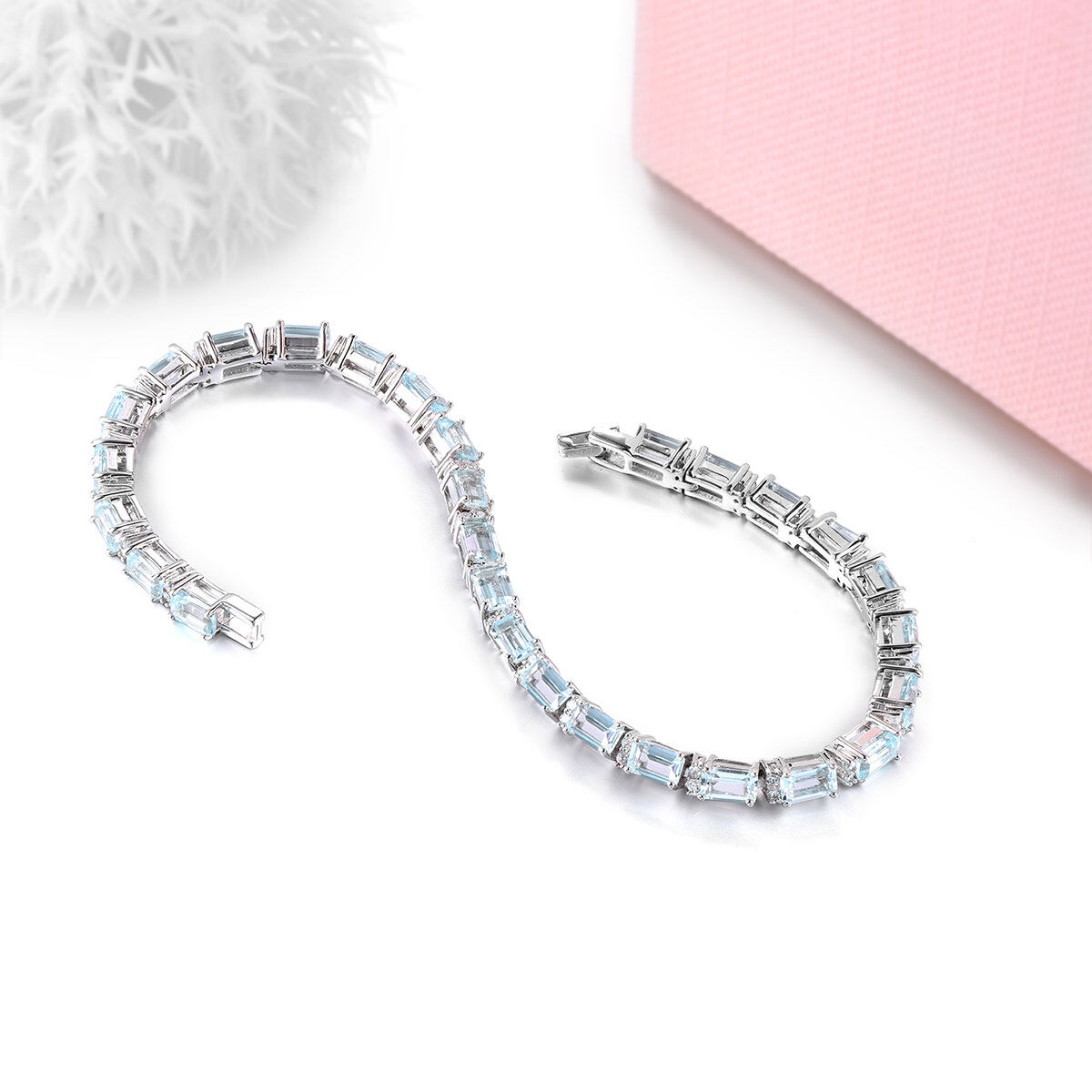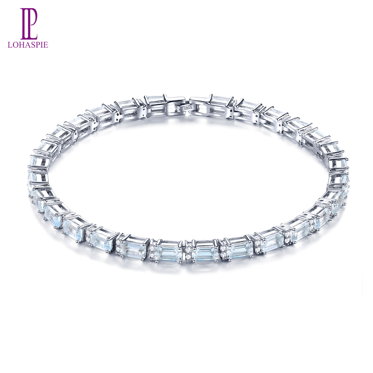 Lohaspie珠宝原始8克拉固体纯银925手链天然海蓝宝石手链浅蓝色宝石海蓝宝石手链女性珠宝母亲节