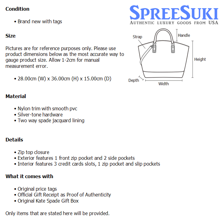 All our products are 100% authentic and purchased from Kate Spade stores in USA. We are a reputable registered business in Singapore and it is illegal to sell counterfeit goods in Singapore. This product also comes with a gift receipt which is printed by the Kate Spade store that we purchased the item from. It states the item that we purchased and the Kate Spade store that it was purchased from, proving the authenticity of the item. Buy with confidence.