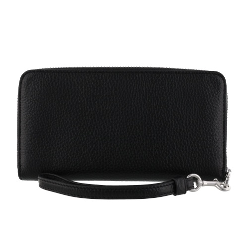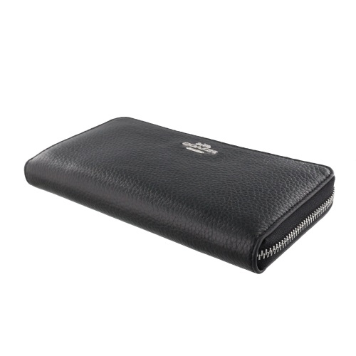 礼品盒中的教练钱包长钱包鹅卵石皮革长拉链周围的钱包黑色银#C4451