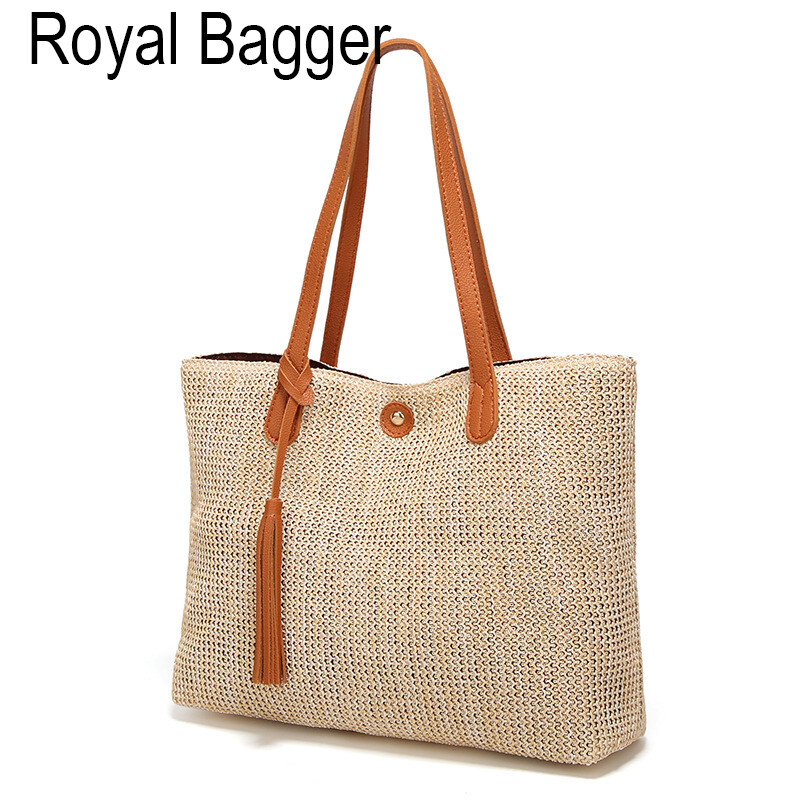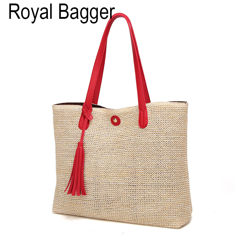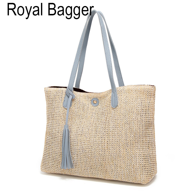 皇家袋装手提袋欧美和美国时尚大袋编织手袋优雅的海滩草袋休闲简单的肩膀
