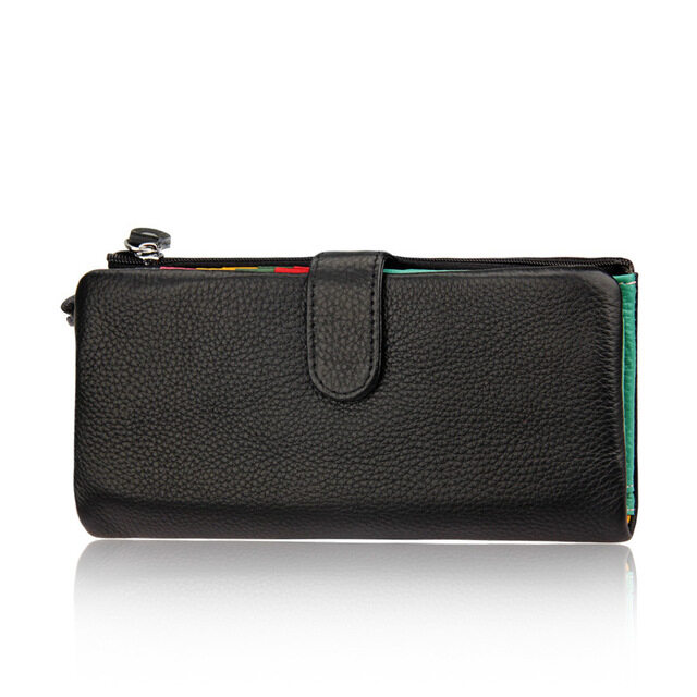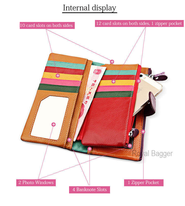 皇家袋子钱包妇女真正的牛皮革长钱包女士多功能卡架钱包时尚休闲工作派对手拿包