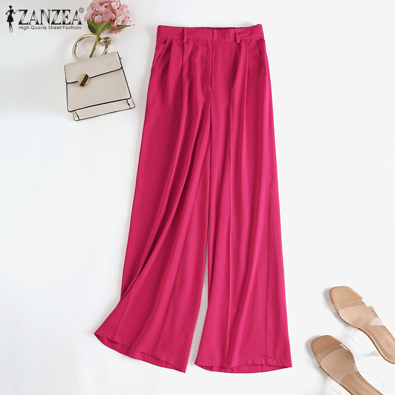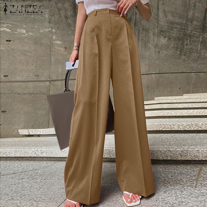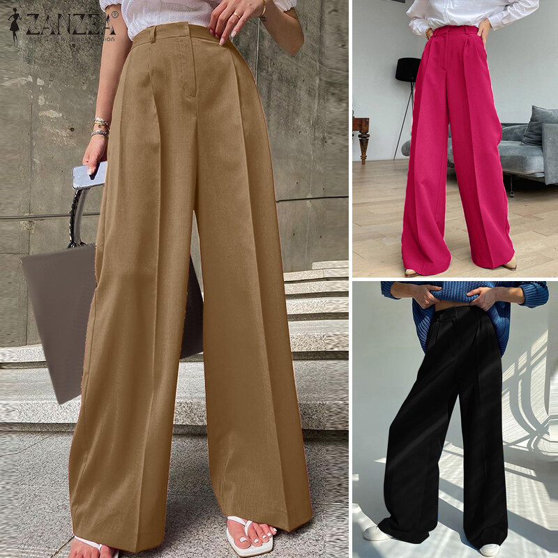 Zanzea妇女高腰部拉链OL业务裤宽腿休闲裤#15