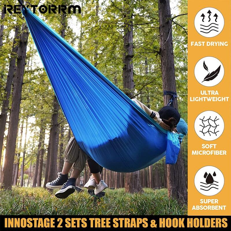 Soft material & Support 500 pounds - Our hammocks are made of new high quality 210T parachute nylon fabric, it is very comfortable and durable. The camping hammocks provide relaxing support up to 500 lbs.