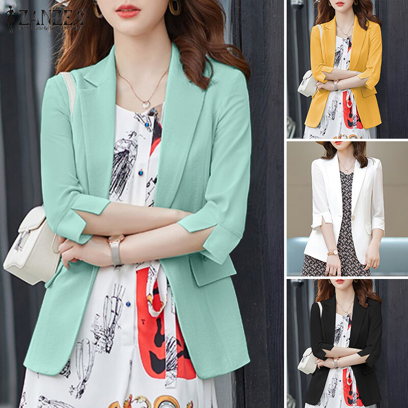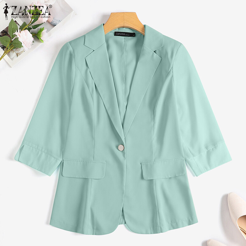 Zanzea韩国风格的女子开拓者按钮UP Solid Office Ol工作倒下套装#11
