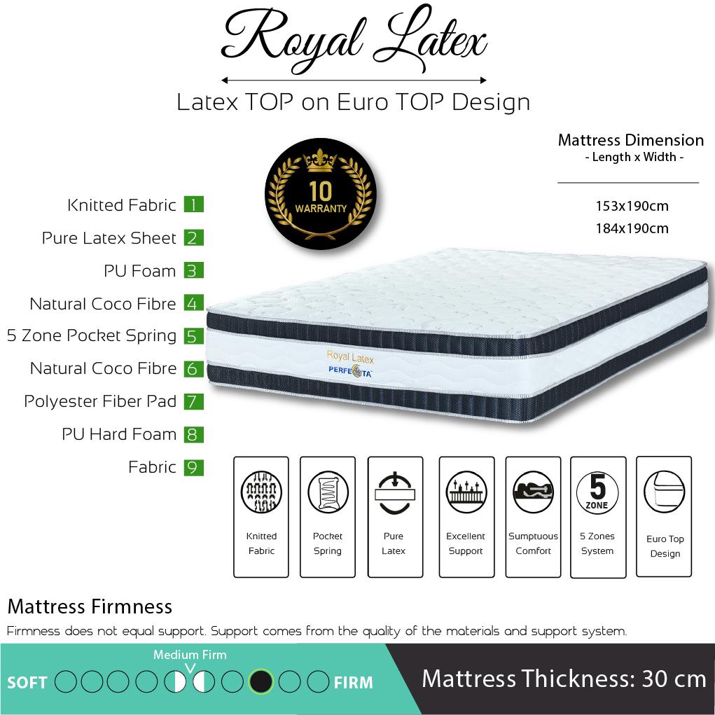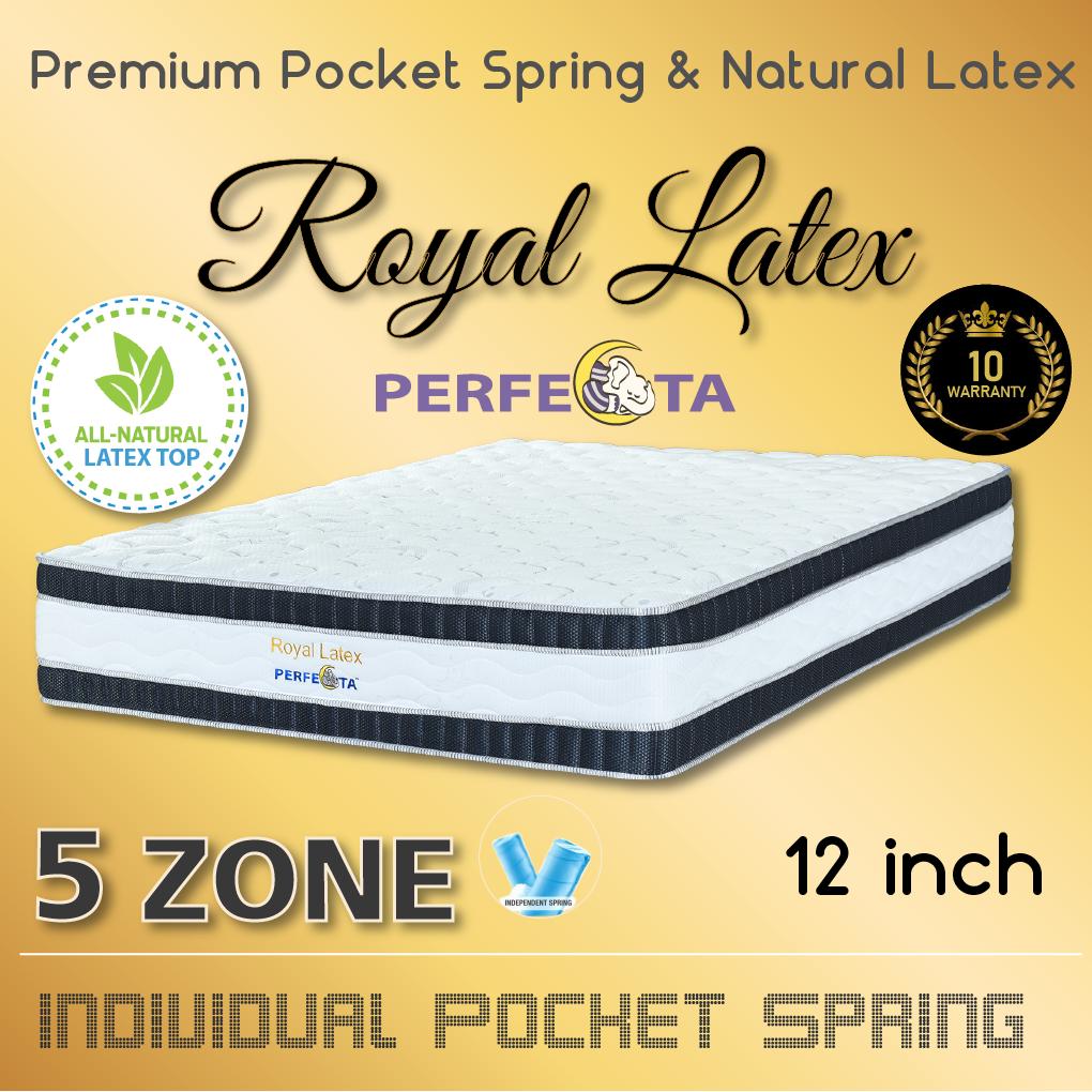 [笨重]国王尺寸 - Perfecta Royal乳胶5区袋春季带天然乳胶顶部欧元顶部设计12英寸床垫