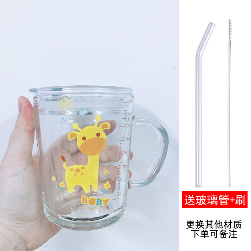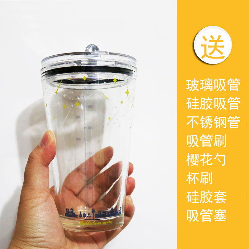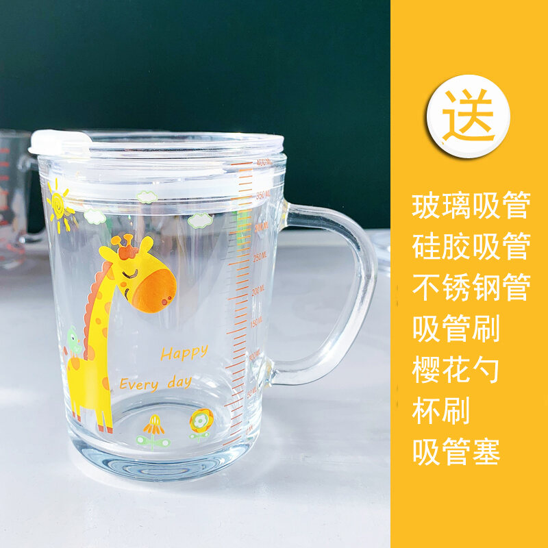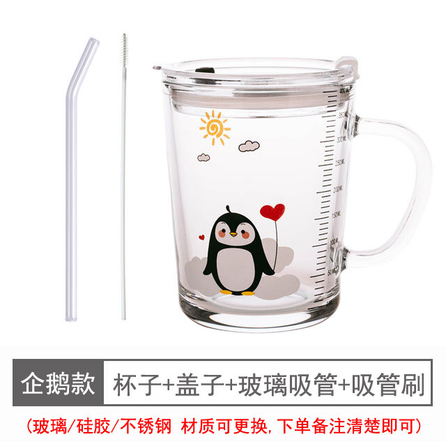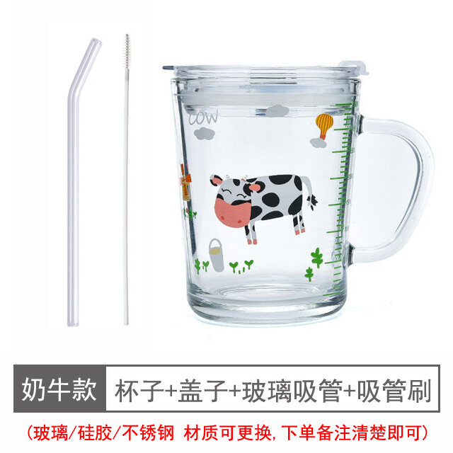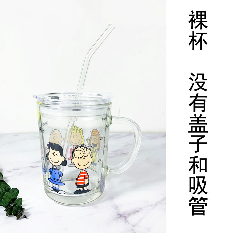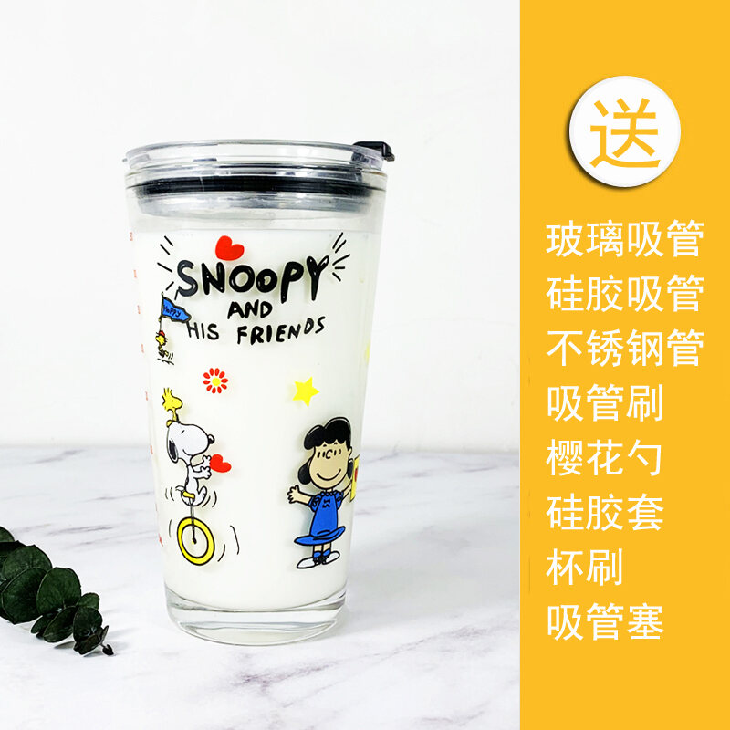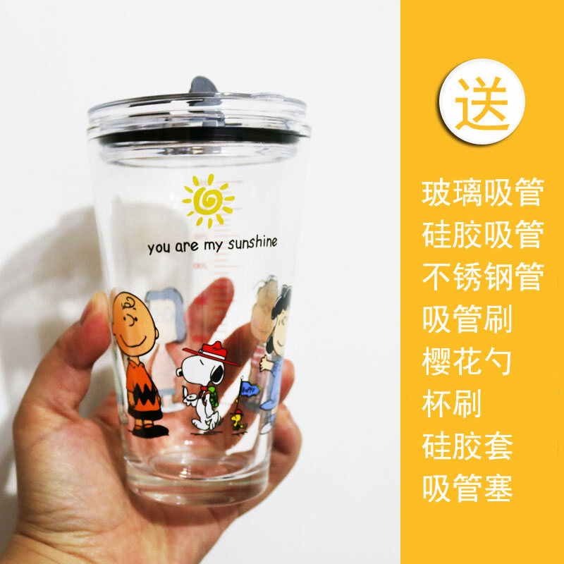优质的产品稻草杯成人便携式儿童牛奶杯Ins Internet名人女孩可爱的水杯史努比秤玻璃
