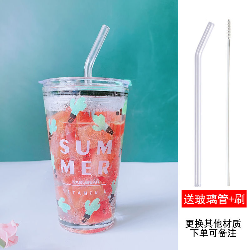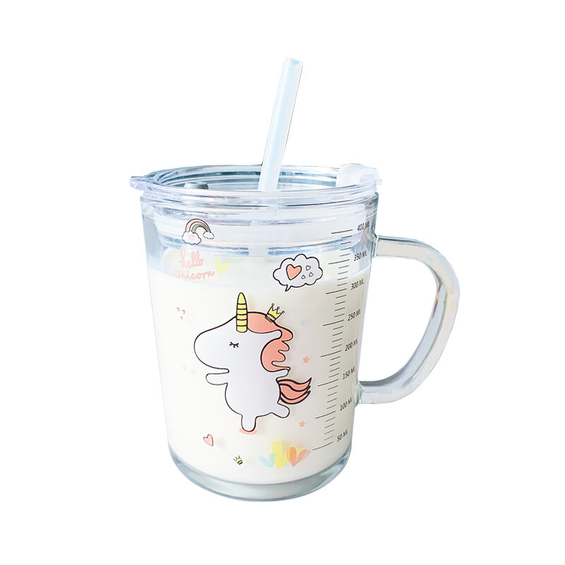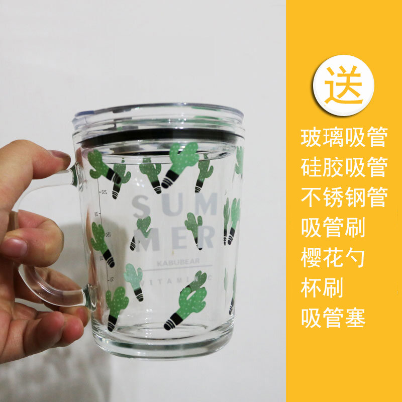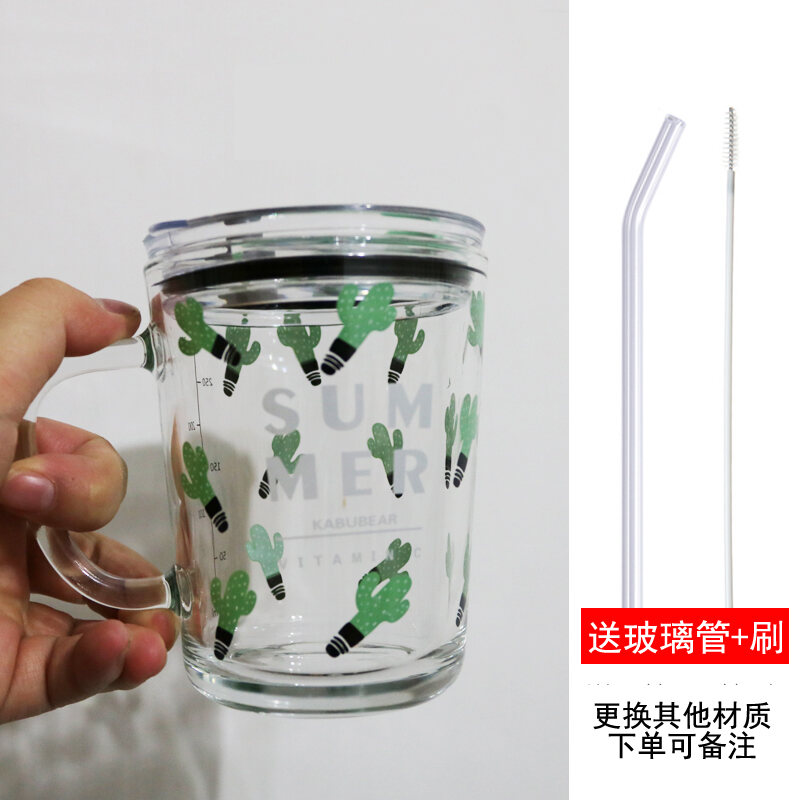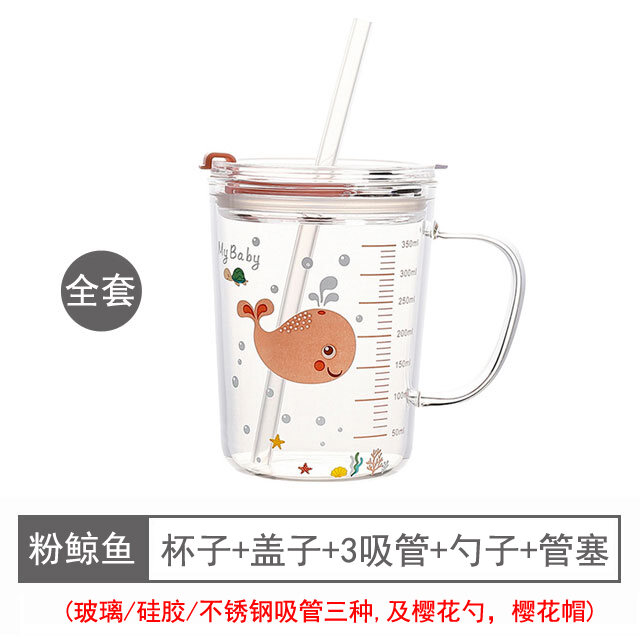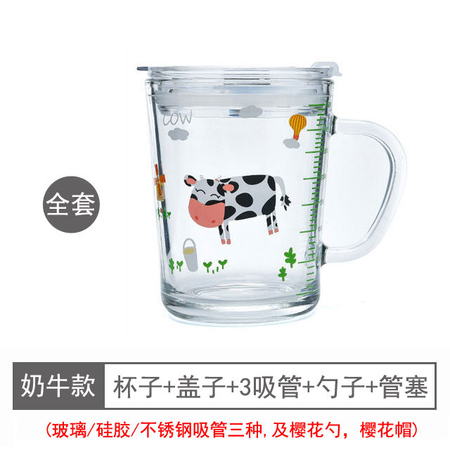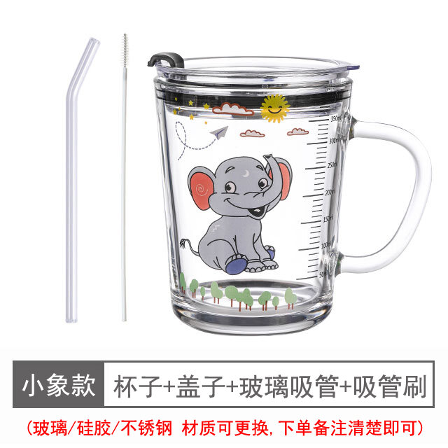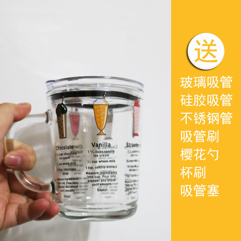 优质的产品稻草杯成人便携式儿童牛奶杯Ins Internet名人女孩可爱的水杯史努比秤玻璃