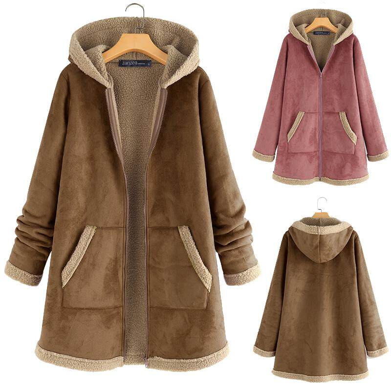 Zanzea妇女冬季温暖的连帽羊毛trench式帽子帽衫拉链上衣
