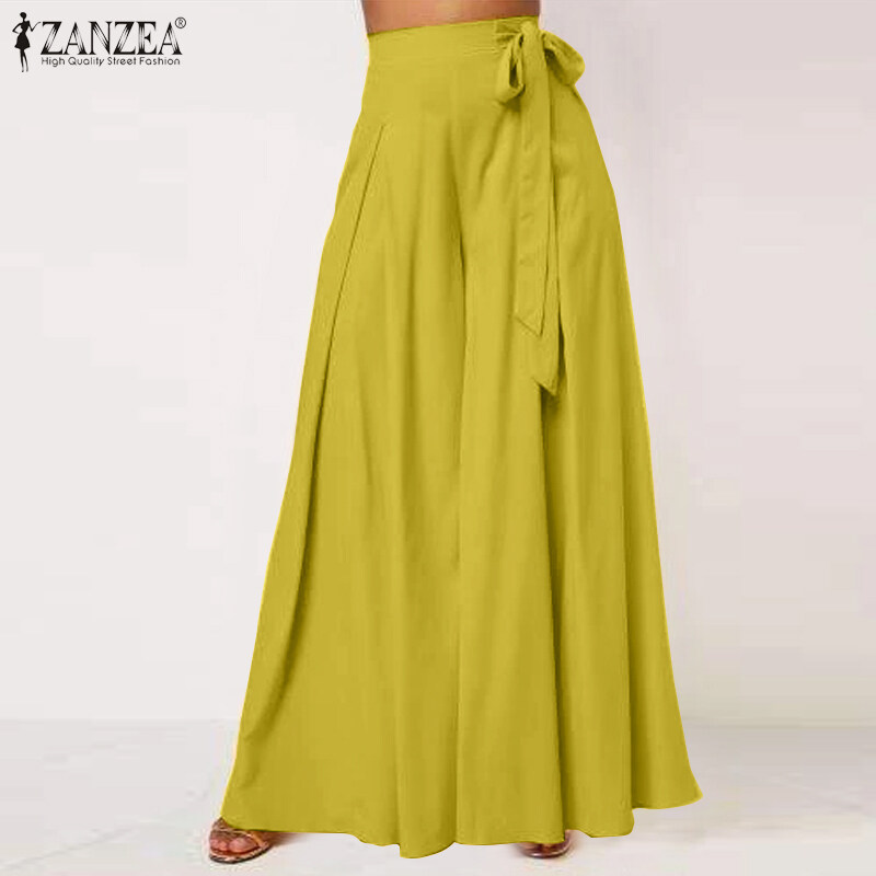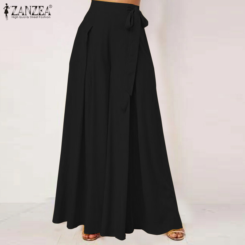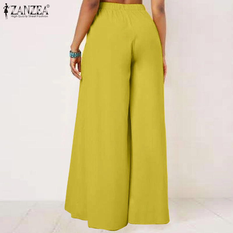Zanzea妇女宽腿高腰部长裤正式商务苏洛特女士女士裤子