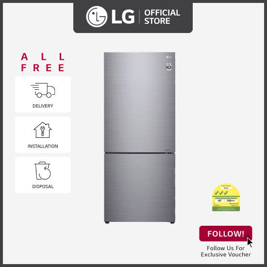 [笨重] LG GB-B4059PZ 2门智能逆变器底部冰箱冰箱,408L,白金银 +免费送货 +免费安装 +免费处置