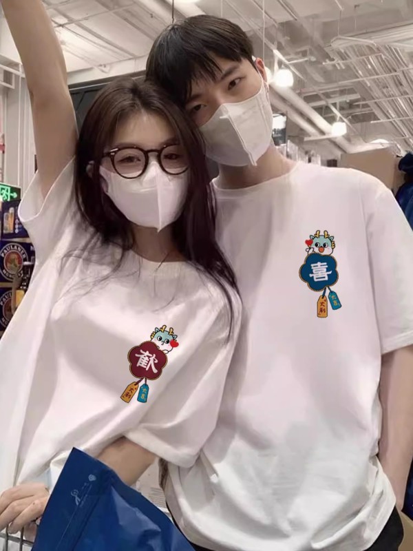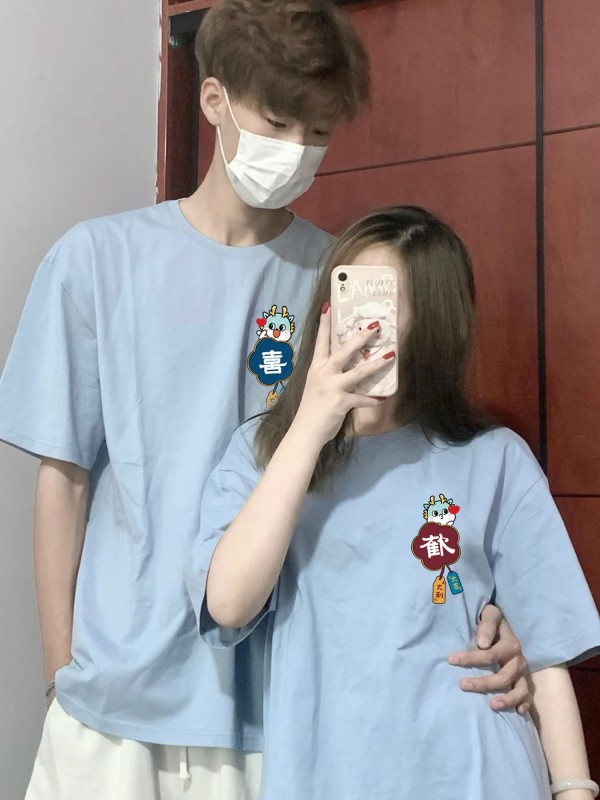 disoo情侣装夏装2024新款t恤高级感纯棉短袖夏季潮流天蓝上衣套装