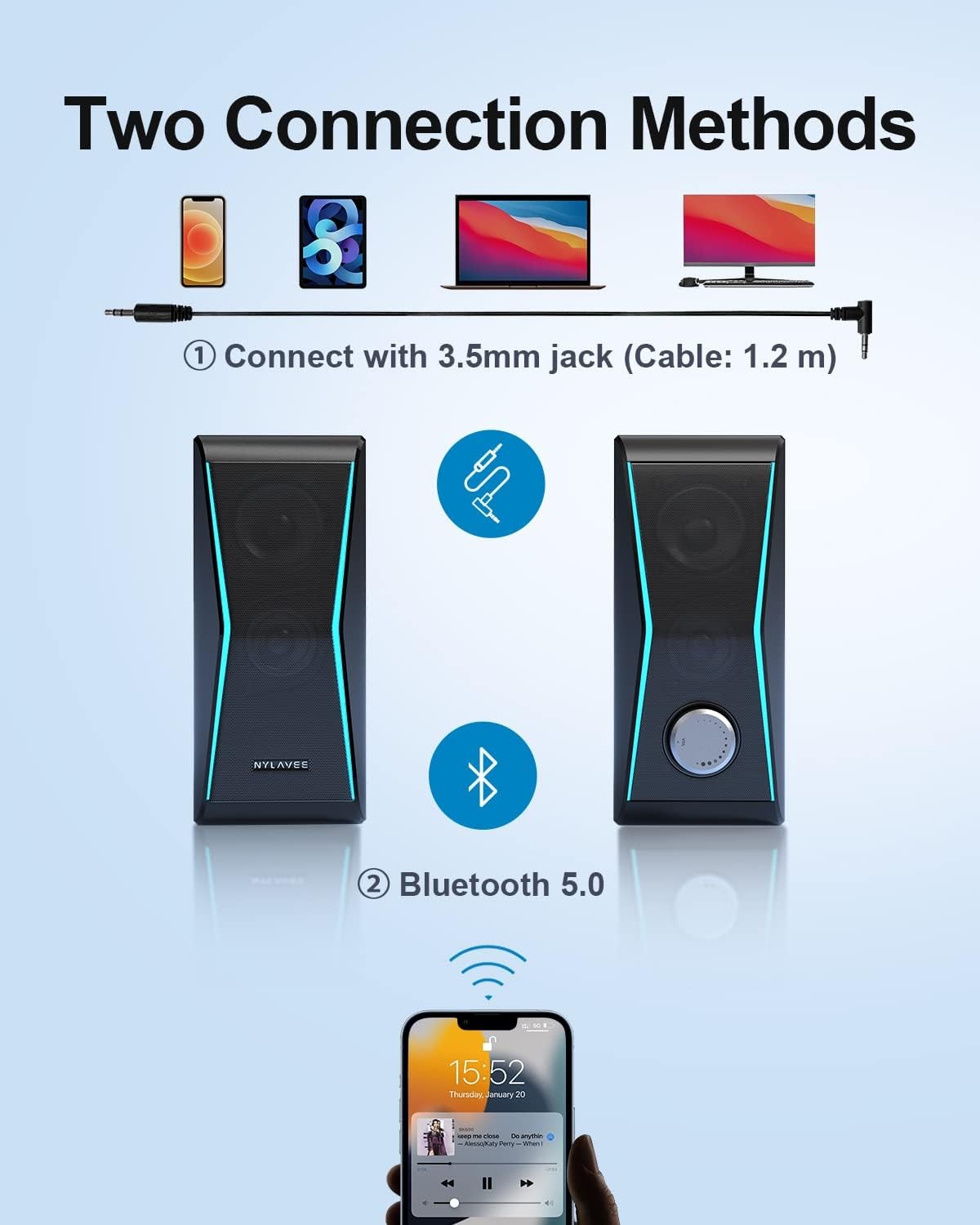✅【Dual Connection & USB Powered】Can be connected via Bluetooth 5.0 and 3.5 mm AUX-in connection; USB powered computer speakers for seamless plug-and-play installation