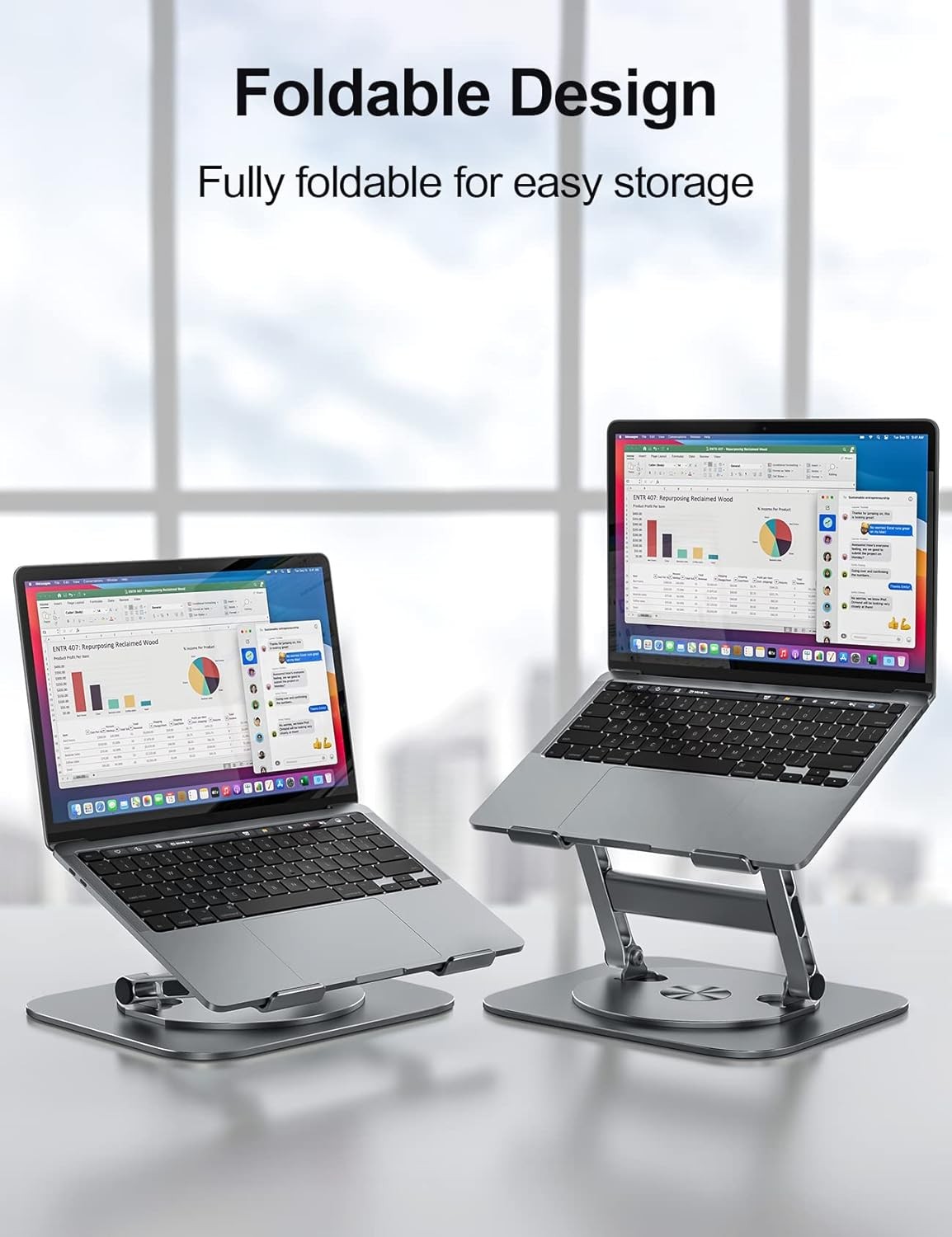 • 360°Rotation:Laptop stand for desk 360° rotatable, Two-axis connecting with the base, makes the rotation more flexible, allows you to swivel your laptop to any angle. It is very suitable for sharing content in meetings or communication